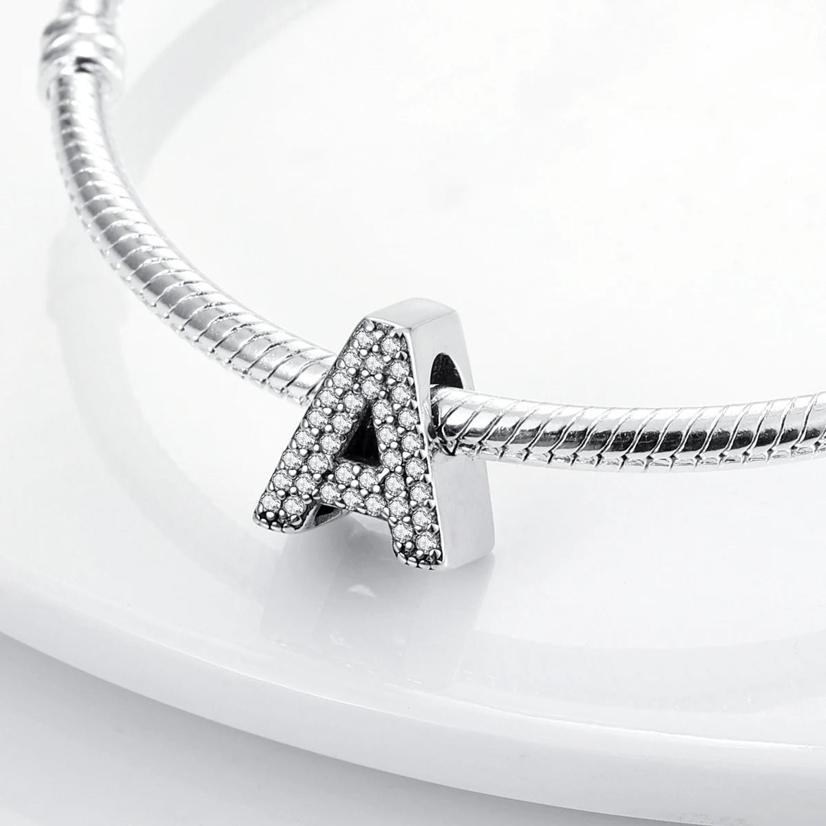 Charm Letra A en plata de primera ley 925 compatibles con pulseras.