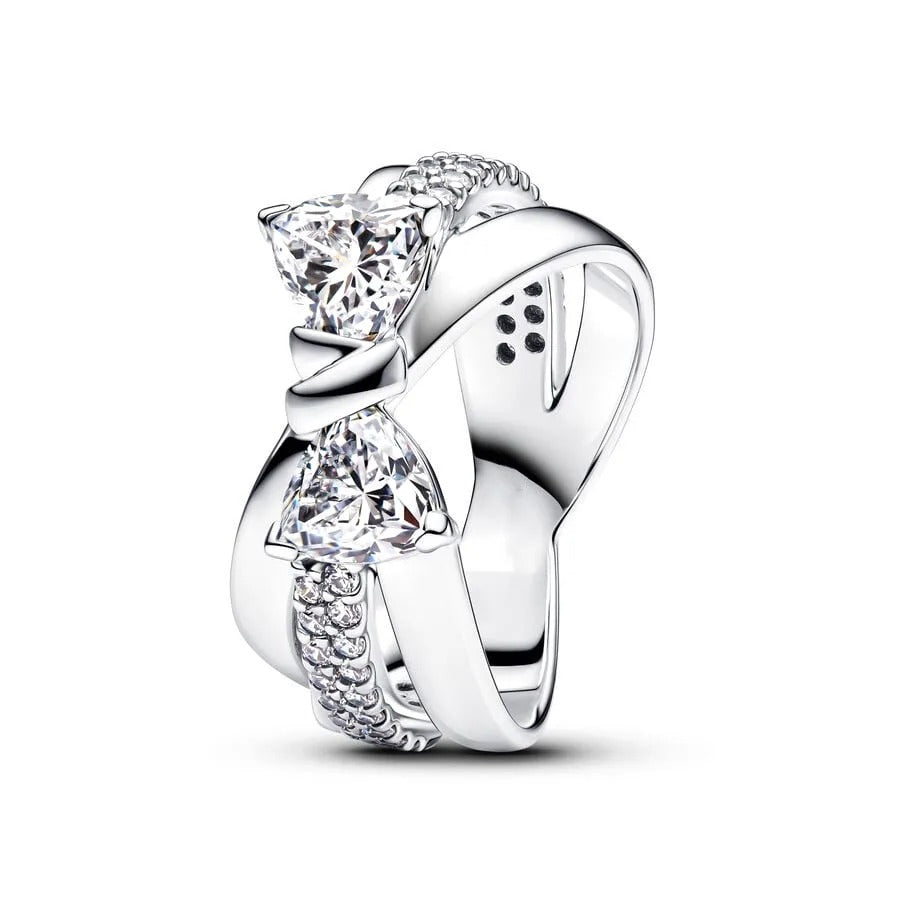 Anillo Banda Cruzada Lazo Brillante con Circonitas Cúbicas