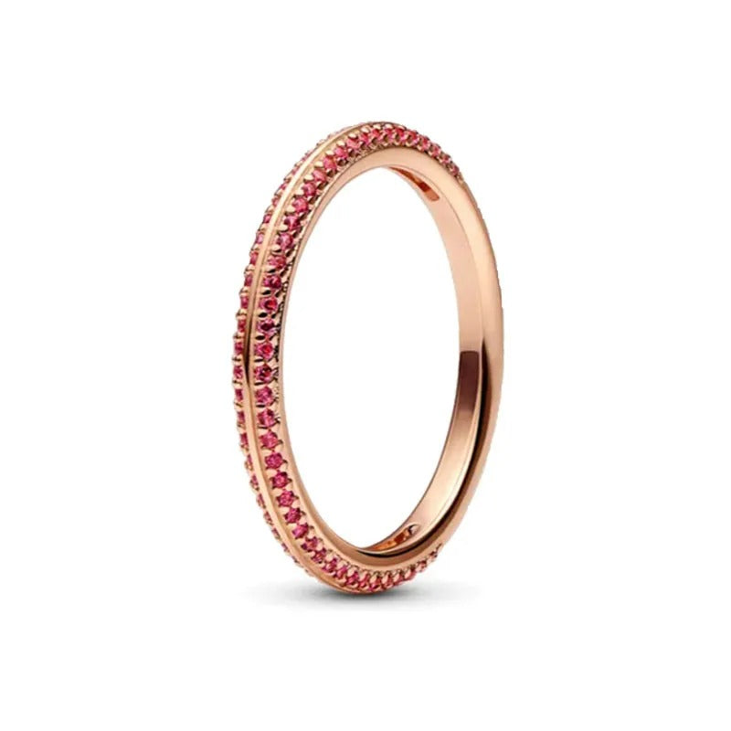 Diseñado para capturar miradas y corazones, este sofisticado anillo ha sido cuidadosamente elaborado en plata de primera ley, ofreciendo no solo belleza, sino también durabilidad y calidad excepcional. Su diseño destaca por un cristal sintético central de brillo radiante, enmarcado por un delicado pavé de circonitas que embellece tanto el engaste como la parte frontal del anillo, aportando un destello sutil y refinado.