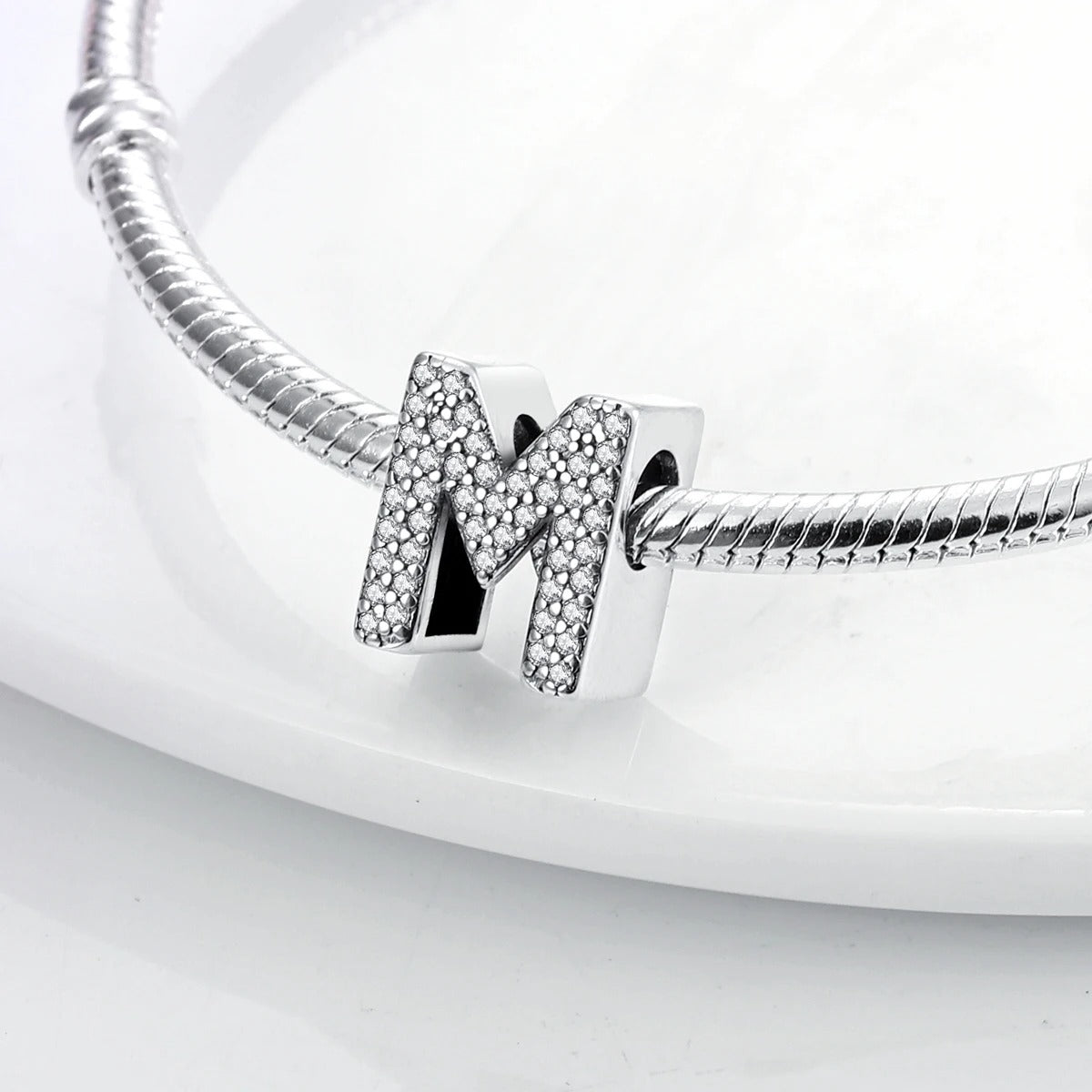 Charm Pandora Letra M en plata de primera ley.