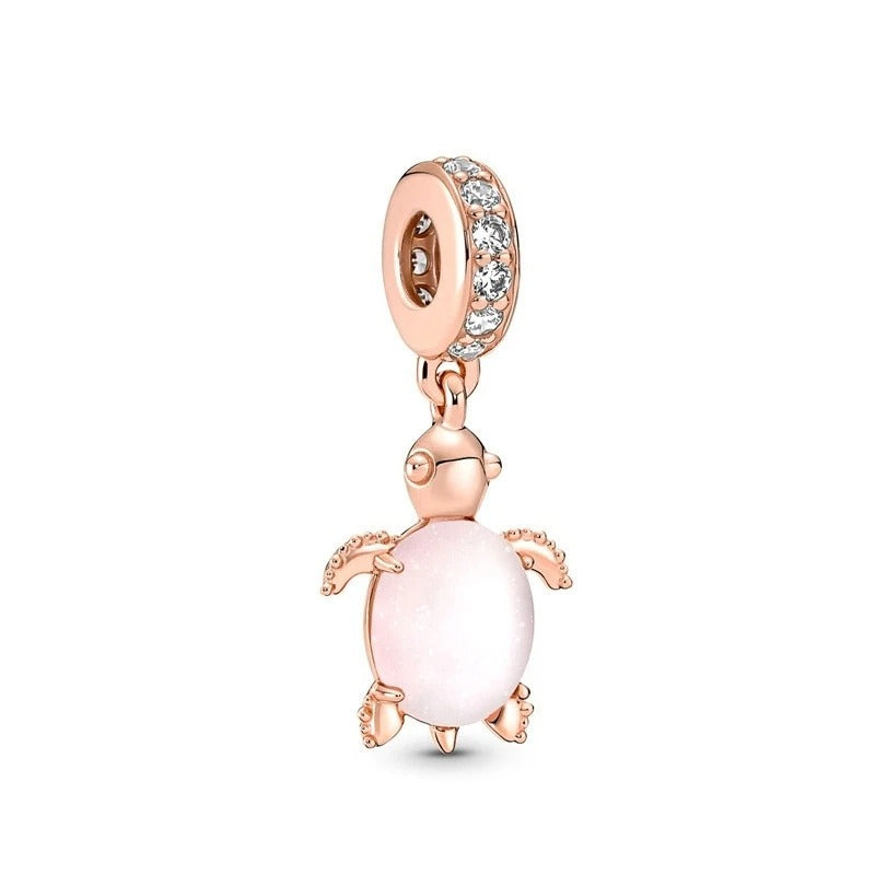 Tortuga Marina Cristal de Murano Rosa en Oro Rosa